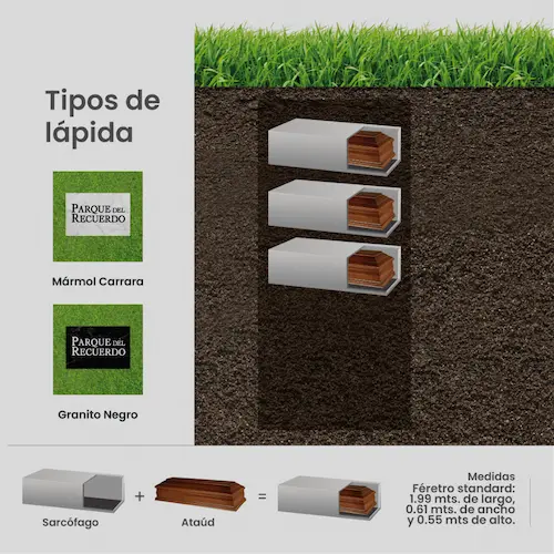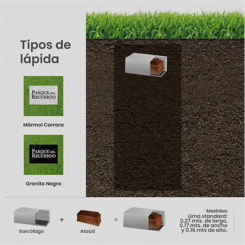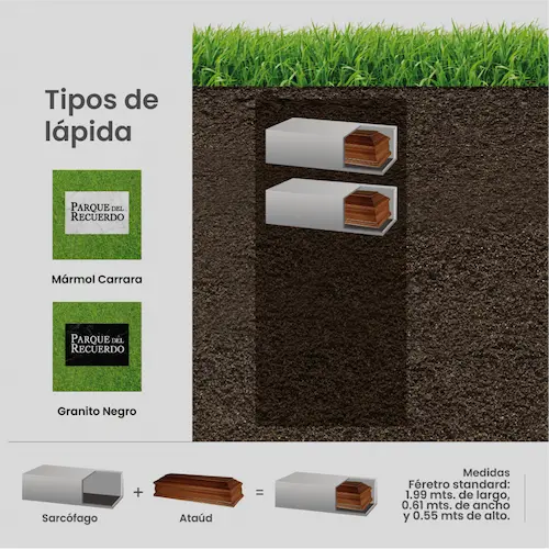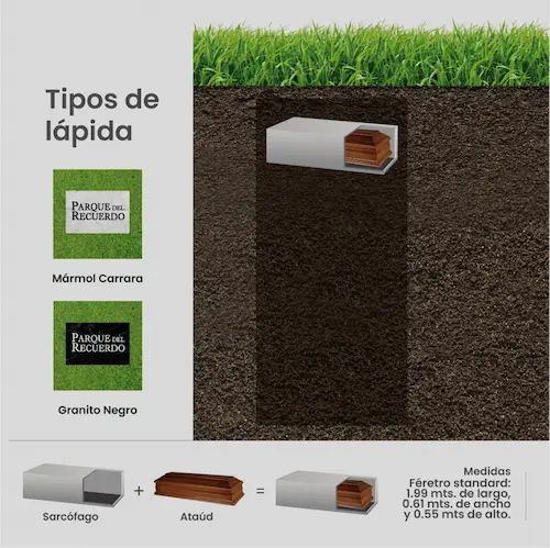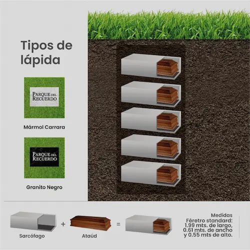 Contamos con diferentes tipos de sepultura, desde planes individuales hasta familiares de 5 niveles. Todos nuestros planes son PERPETUAS y cero costo de mantenimiento