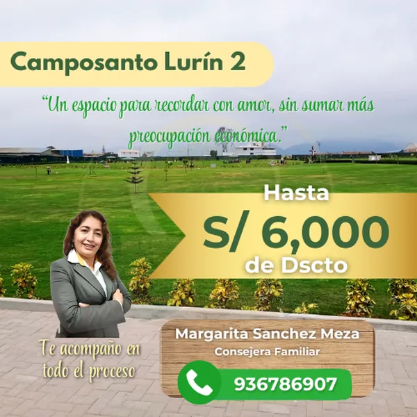 Sepulturas perpetuas, columbarios, cinerarios y mausoleos en el Camposanto Lurín. Beneficios de prevención, financiamiento y asesoría con Margarita Sánchez.